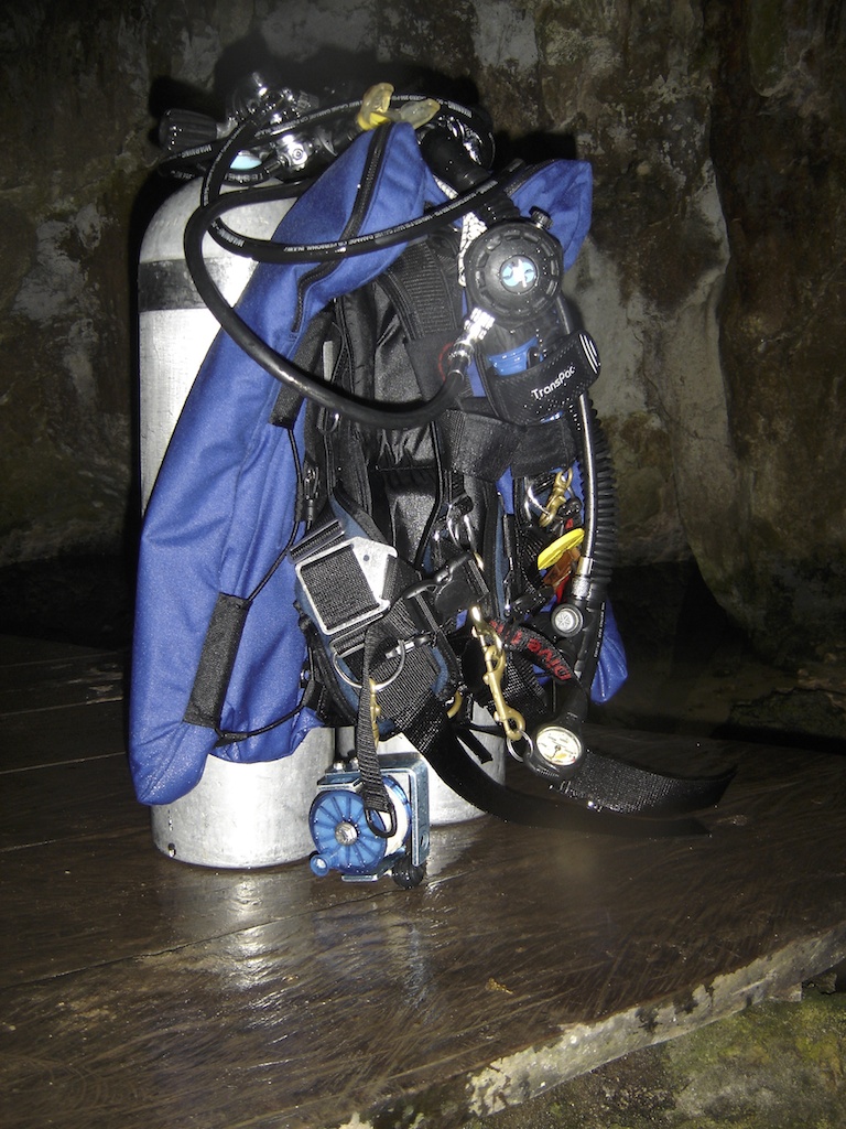 Over ten years ago I was riding on the back of a motorcycle…one of those fancy Ground Pounder’s–and the operator of the bike hit a pot hole going about 70 mph. A compression fracture resulted and left me with a couple of very small pieces of L-5 vertebra that float around and get irritated. Anything that compresses them causes intense pain. I’ve super-strengthened my core with Pure Barre and Stand Up Paddleboarding but even with those workouts I have to use care that I don’t compress those dastardly bits of bone. Considering that my double steel tanks and manifold weigh in at about 75 to 80 pounds I’m to the point where I either switch to side mount or forget visiting these beautiful caves.