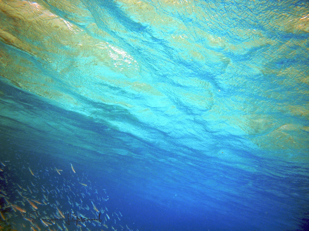 I hung motionless in the turquoise water, silently witnessing a living, golden crown adorning a beautiful growth of elk horn coral in the white sand bottom. That’s how the Sea is….alive, moving, breathing as one with all Her creatures. The French grunts with their golden stripes schooled and moved as one being, swaying with the surge of the water column. I too moved only as the water moved me, hanging so peaceful in saltwater reverie.
