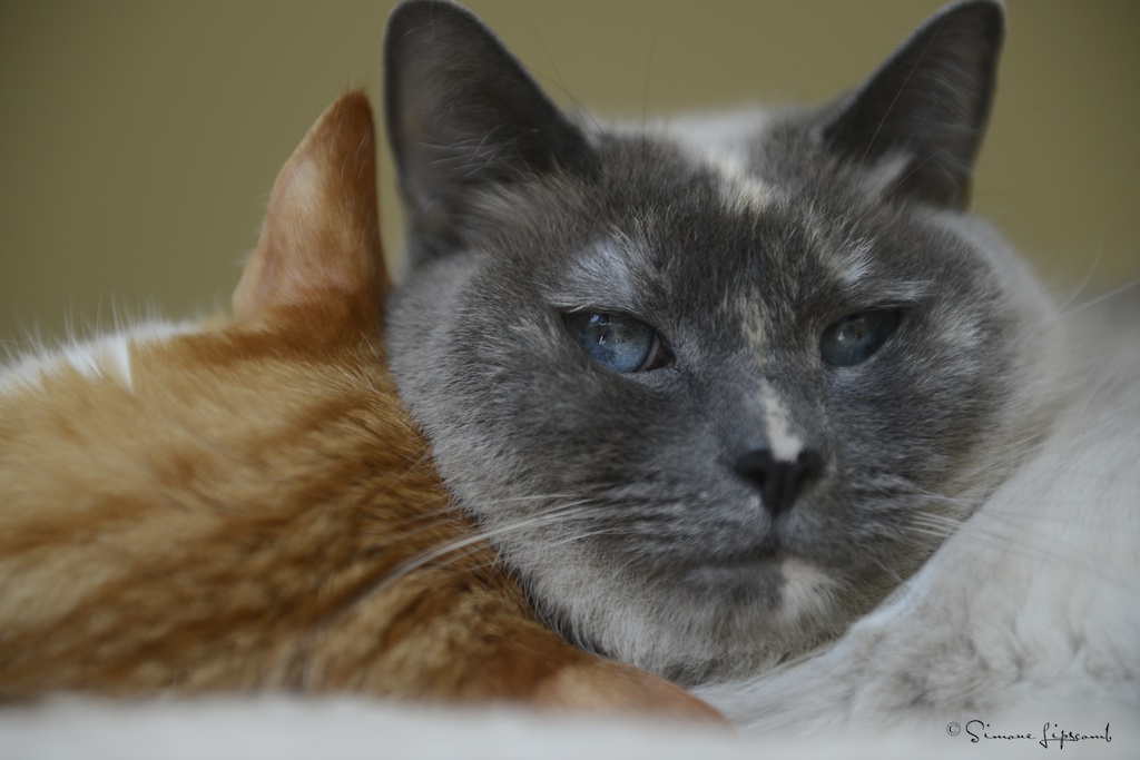 The hard core addict is my shy girl. Any time I walk out the back door, she is now on my heels and eager to have another…another…another. She consumes huge leaves, stems and I’ve wondered what would happen if I smeared fresh juice on her orange brother. So far I cannot convince him to participate in my science experiment. Her normal behavior is to get up to sleep more. With an occasional break to eat, get brushed, and contemplate more cat napping. They say addicts will do anything for another fix. Reminds me of the search for fossil fuels….hmmm.