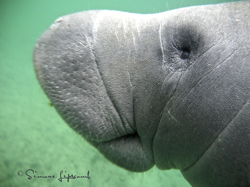 In a recent trip with a group of women to Crystal River, Florida, a juvenile was persistent in forcing an interaction with me. I believe in passive observation only and don’t ‘pet’ them. If they want to nose around my dry suit, play with my camera housing or suck on my hair, I don’t mind. But I don’t encourage the contact by excessive touch. I want them to be wild for their own good.